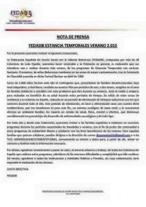 NOTA DE PRENSA EMITIDA POR LA FEDERACIÓN NACIONAL FEDASIB. CAPTACIÓN DE FAMILIAS GUARDADORAS. Por periodo de acogida damos entre 18 y 24 meses de prolongación en su ciclo vital. Eliminación de isotopos radioactivos. Salida urgente de la zona radiada según informes de la OMS. Aumento del índice en oncología infantil alarmante. Ofrecemos una actuacion integral …