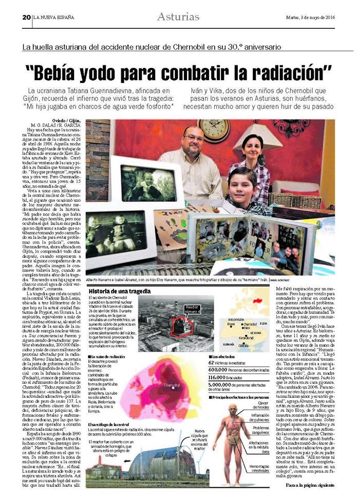 Publicacion con motivo del 30 Aniversario de Chernobil de La Nueva España, prensa independiente de Asturias.